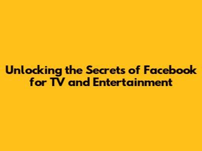 Unlocking The Secrets Of Facebook For TV And Entertainment