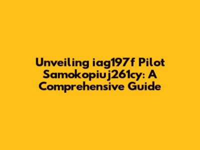 Unlocking The Secrets Of Iag197f Pilot Samokopiuj261cy