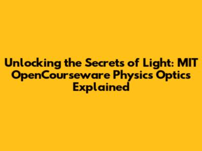 Unlocking The Secrets Of Light: MIT OpenCourseware Physics Optics Explained