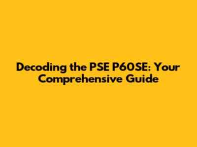 Decoding the PSE P60SE: Your Comprehensive Guide