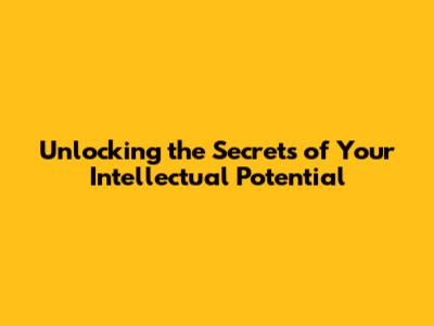 Unlocking The Secrets Of Your Intellectual Potential