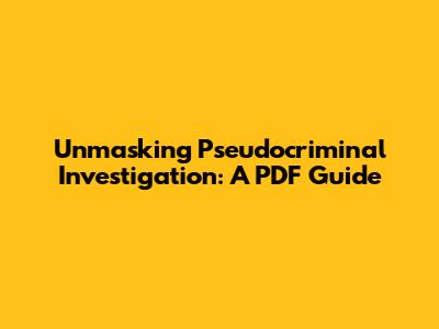 Unmasking Pseudocriminal Investigation: A PDF Guide