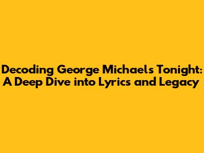 Unpacking George Michael's 'Tonight': Lyrics, Meaning & More