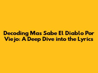 Unpacking 'Mas Sabe El Diablo Por Viejo' Lyrics: Meaning And Analysis