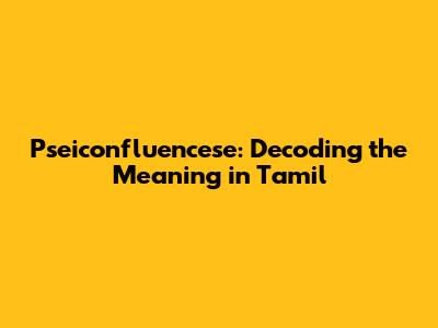 Unpacking 'Pseiconfluencese': Meaning & Tamil Translation