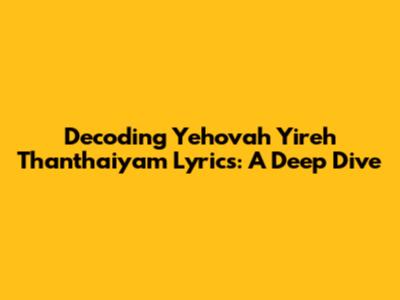 Hey guys! Ever found yourself humming along to a song and thinking, "What does this actually mean?" Well, today, we're diving headfirst into the beautiful and spiritually rich world of the lyrics from "Yehovah Yireh Thanthaiyam." This is more than just a song; it's a prayer, a declaration, and a testament to faith. So, grab your coffee (or tea!), settle in, and let's unravel the layers of meaning behind these powerful words.