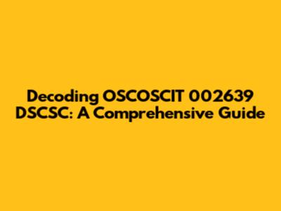 If we're dealing with software or firmware, OSCOSCIT could be a specific module or component of a larger system. 002639 could be the version or a build number, and DSCSC might be a function or a part of that module. It might be related to data processing, system configuration, or security protocols. For example, if it's within a software package, the numbers and letters could be pointing to a specific build or release of the software.