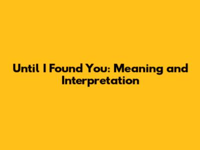 Until I Found You: Meaning And Interpretation