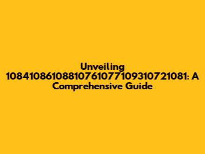 Unveiling 10841086108810761077109310721081: A Comprehensive Guide