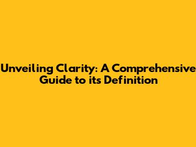 Unveiling Clarity: A Comprehensive Guide To Its Definition