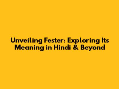 Unveiling 'Fester': Exploring Its Meaning In Hindi & Beyond