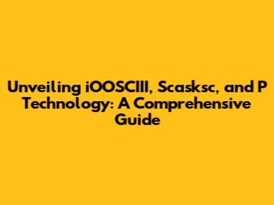 Unveiling IOOSCIII, Scasksc, And P Technology: A Comprehensive Guide