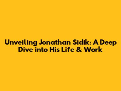 Unveiling Jonathan Sidik: A Deep Dive Into His Life & Work
