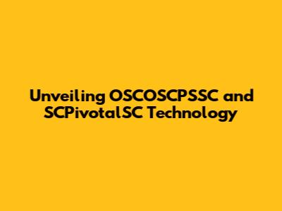 Unveiling OSCOSCPSSC And SCPivotalSC Technology