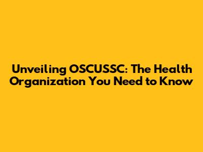 Unveiling OSCUSSC: The Health Organization You Need To Know