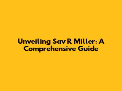 Unveiling Sav R Miller: A Comprehensive Guide
