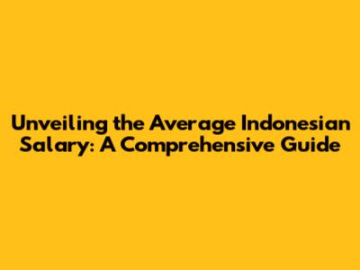 Unveiling The Average Indonesian Salary: A Comprehensive Guide