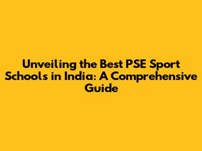 Unveiling The Best PSE Sport Schools In India: A Comprehensive Guide