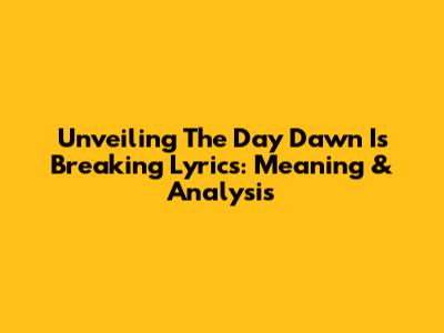 Unveiling 'The Day Dawn Is Breaking' Lyrics: Meaning & Analysis