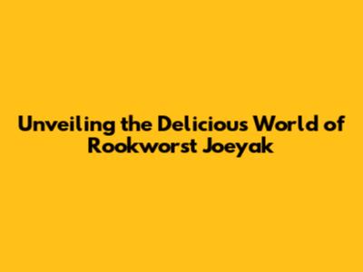 Unveiling The Delicious World Of Rookworst Joeyak