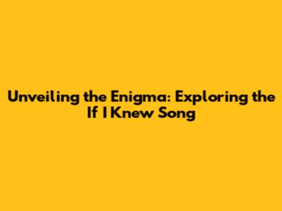 Unveiling The Enigma: Exploring The 'If I Knew' Song