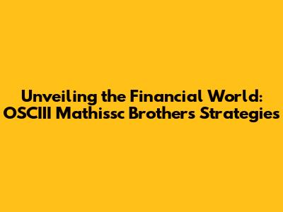 Unveiling The Financial World: OSCIII Mathissc Brothers' Strategies