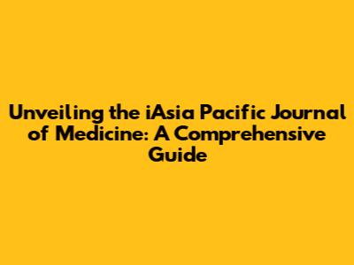 Unveiling The IAsia Pacific Journal Of Medicine: A Comprehensive Guide