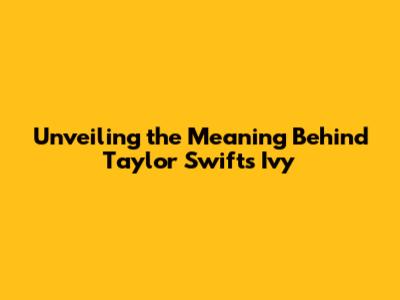 Unveiling The Meaning Behind Taylor Swift's 'Ivy'