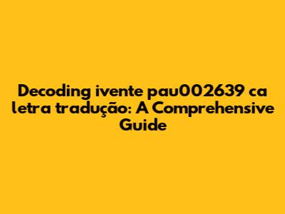 Hey there, music lovers! Ever stumbled upon a song title like "ivente pau002639 ca letra tradução" and found yourself scratching your head? Yeah, me too! It's like a secret code, right? Well, let's crack it together! This article is all about understanding what this seemingly cryptic phrase means, especially when it comes to song lyrics and translations. We're going to dive deep, explore the possible origins, and, most importantly, figure out what the heck the translation is all about. Get ready for a linguistic adventure!