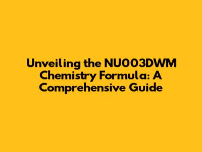 Unveiling The NU003DWM Chemistry Formula: A Comprehensive Guide
