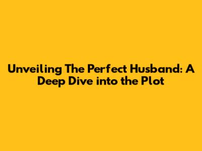 Unveiling 'The Perfect Husband': A Deep Dive Into The Plot