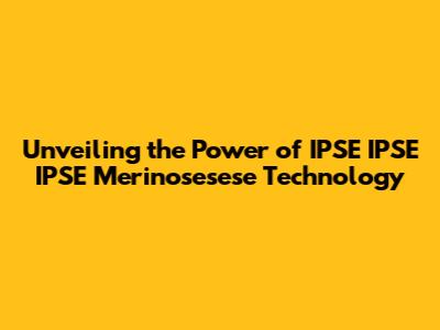 Unveiling The Power Of IPSE IPSE IPSE Merinosesese Technology