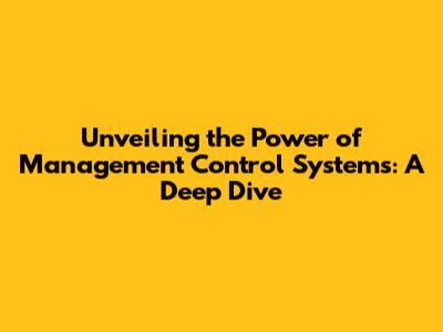 Unveiling The Power Of Management Control Systems: A Deep Dive