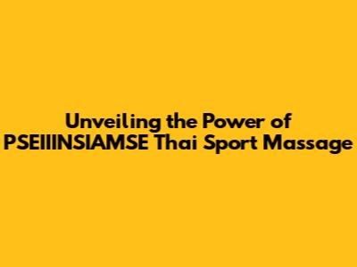 Unveiling The Power Of PSEIIINSIAMSE Thai Sport Massage