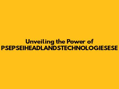 Unveiling The Power Of PSEPSEIHEADLANDSTECHNOLOGIESESE