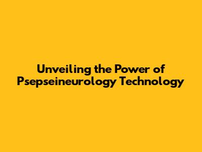 Unveiling The Power Of Psepseineurology Technology