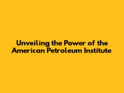 Unveiling The Power Of The American Petroleum Institute