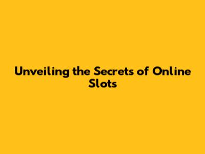 Unveiling The Secrets Of Online Slots