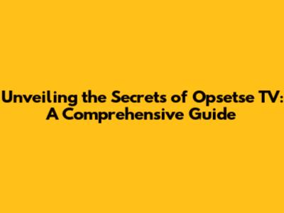 Unveiling The Secrets Of Opsetse TV: A Comprehensive Guide