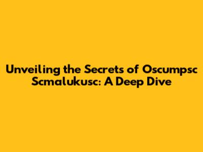 Unveiling The Secrets Of Oscumpsc Scmalukusc: A Deep Dive