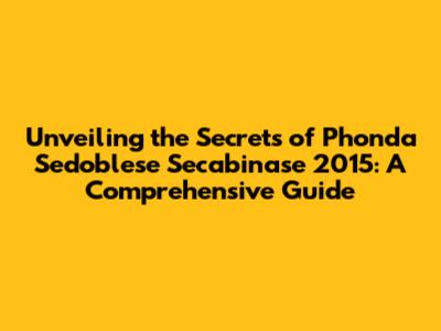 Unveiling The Secrets Of Phonda Sedoblese Secabinase 2015: A Comprehensive Guide