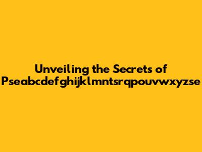 Unveiling The Secrets Of Pseabcdefghijklmntsrqpouvwxyzse
