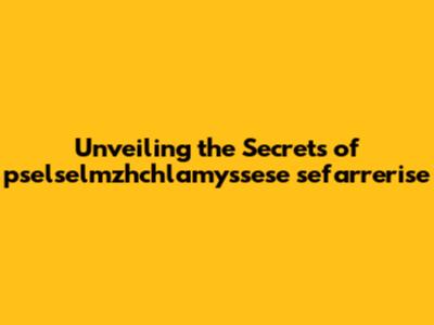 Unveiling The Secrets Of Pselselmzhchlamyssese Sefarrerise