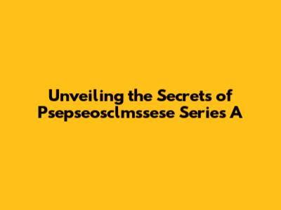 Unveiling The Secrets Of Psepseosclmssese Series A