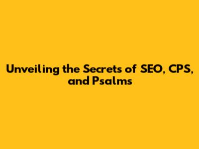 Unveiling The Secrets Of SEO, CPS, And Psalms