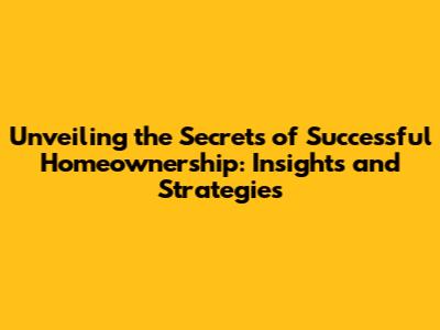 Unveiling The Secrets Of Successful Homeownership: Insights And Strategies