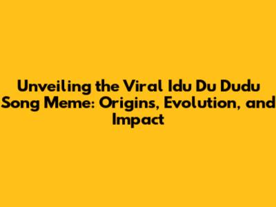 Unveiling The Viral 'Idu Du Dudu' Song Meme: Origins, Evolution, And Impact