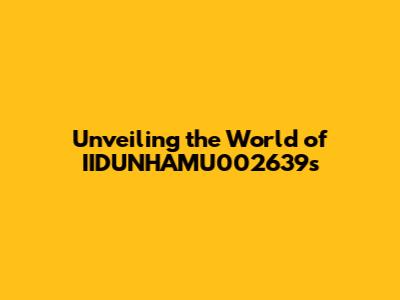 Unveiling The World Of IIDUNHAMU002639's