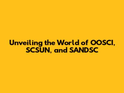 Unveiling The World Of OOSCI, SCSUN, And SANDSC