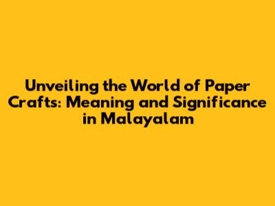 Unveiling The World Of Paper Crafts: Meaning And Significance In Malayalam